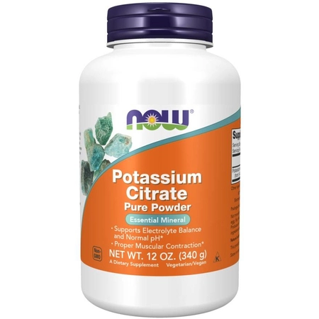 - NOW Potassium Citrate Powder je snadno vstřebatelná forma draslíku v prášku, která podporuje elektrolytovou rovnováhu, funkci svalů a zdraví nervového systému. Pomáhá udržovat normální krevní tlak a podporuje funkci ledvin.